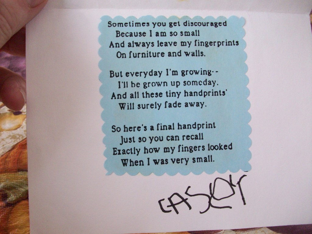 And this, from a journal entry: “My mom will be gone for a couple weeks, and I miss her.”